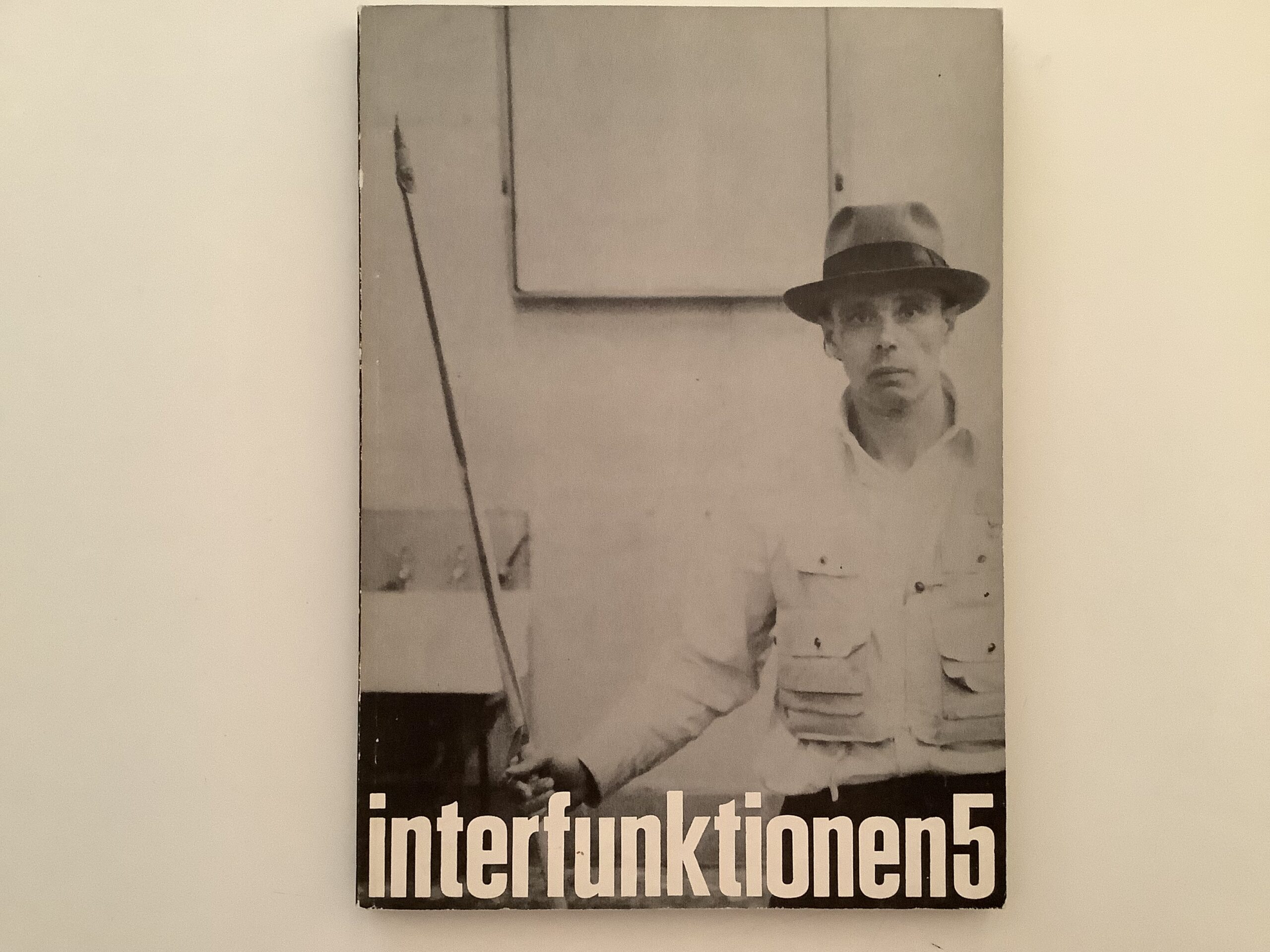 In 1968, the Cologne psychologist and publicist F. W. Heubach founded the magazine interfunktion as a platform for those artists who did not belong to Pop Art, Kinetic Art, Land Art and Minimal Art – the art movements that dominated documenta 4 that year .1 Until 1975, a total of twelve issues of the magazine appeared irregularly, which on the one hand provided information about art and art theory, but on the other hand were also works of art themselves. With a changing staff of authors and editors, interfunktionen became an important organ in the West German art world. – Beuys contributed very different ideas and works and used the magazine to publish photos of his actions, texts such as “Towards the Ideal Academy” or for reproductions of his drawings or other works. He transformed the booklets into multiples by adding additional stamps, notes or collaged elements. – One of the most important avantgarde journals. – Contains the following articles: ‘Kunst als Kontext’ (Oppenheim, Weibel, EXPORT Christo etc.) – ‘Zur Theorie’ (Architektur als Doppelndes Lottchen) – Joseph Beuys: ‘Cletic’ (Aktion) – Lit. Texte: Heubach, Wiener etc. – Neue Leute: Baumgarten, Acconci – Informationen – Außerdem Materialien von Kagel, Vostell, Immendorf, Brehmer a.a. – [Vgl. Kellein / Das Archiv Sohm; S.177].