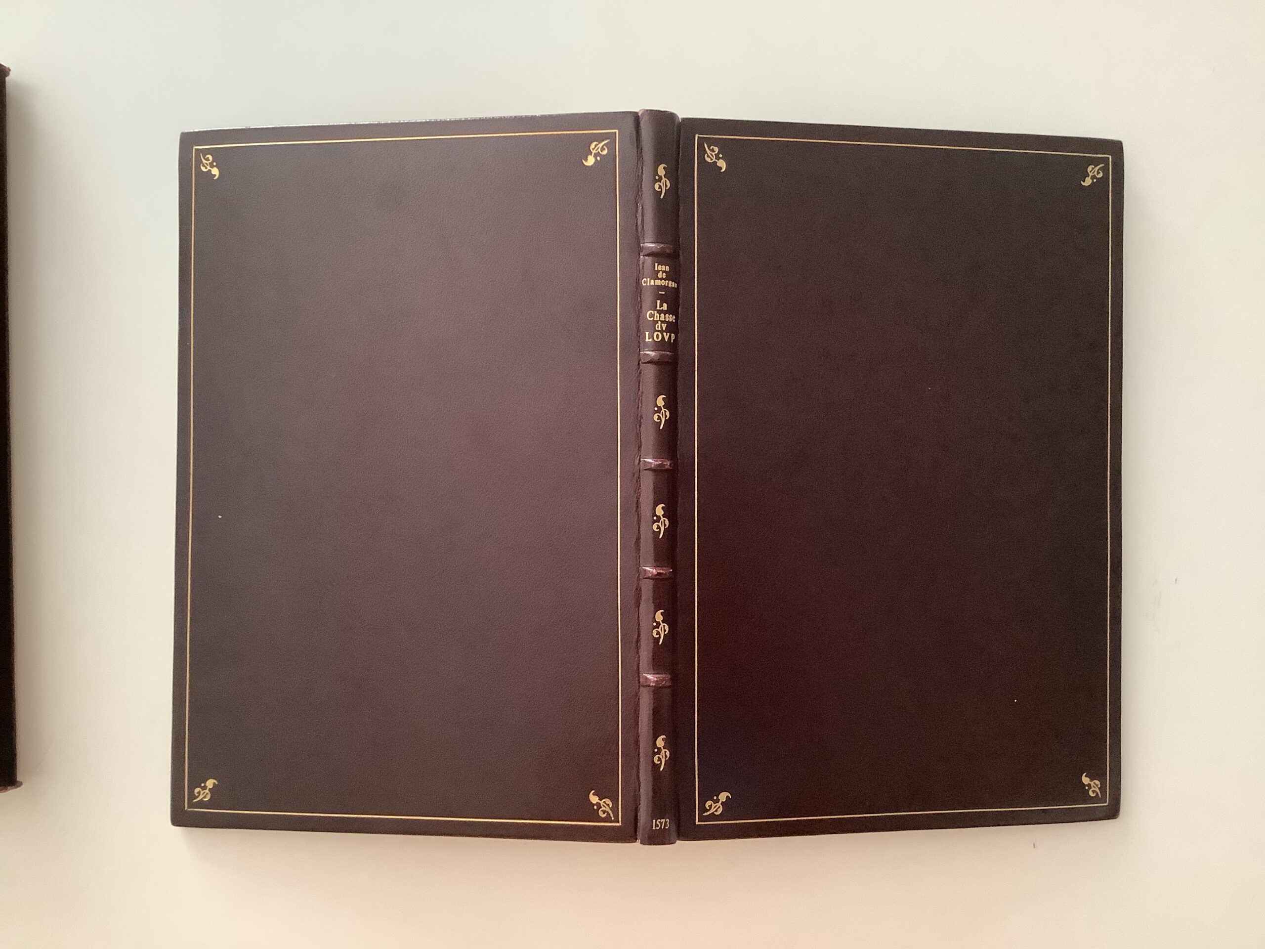 Early edition, very rare! The work was so successful that it was reprinted more than a hundred times between the 16th and 20th centuries. Leaves 2 and 3 are occupied by an epistle by Jean de Clamorgan “Au Roy Charles Neufieme”. “Clamorgan’s book, whose merit is indisputable, has had the rare fortune to see its fate linked to that of the Maison Rustique, but it is not uncommon to see Clamorgan’s work sell for more than the complete volume.” (Thiébaud). – 14 fine woodcuts (136 x 108 mm) illustrate the practice and technique of wolf hunting. – “Fourteen woodcuts of wolves and techniques of the hunt, first used in Du Puy’s edition of 1566. Also at Harvard are two Gabriel Cartier editions of 1584 and 1597, without place of printing. – On the front fly-leave four line handwriten note by the previous owner ‘le present livre a partient a moi Pierre Chanche qui ma Este donner ma belle mere aujourd’hui 18 Juine 1619. Some leaves with almost invisible repairs.