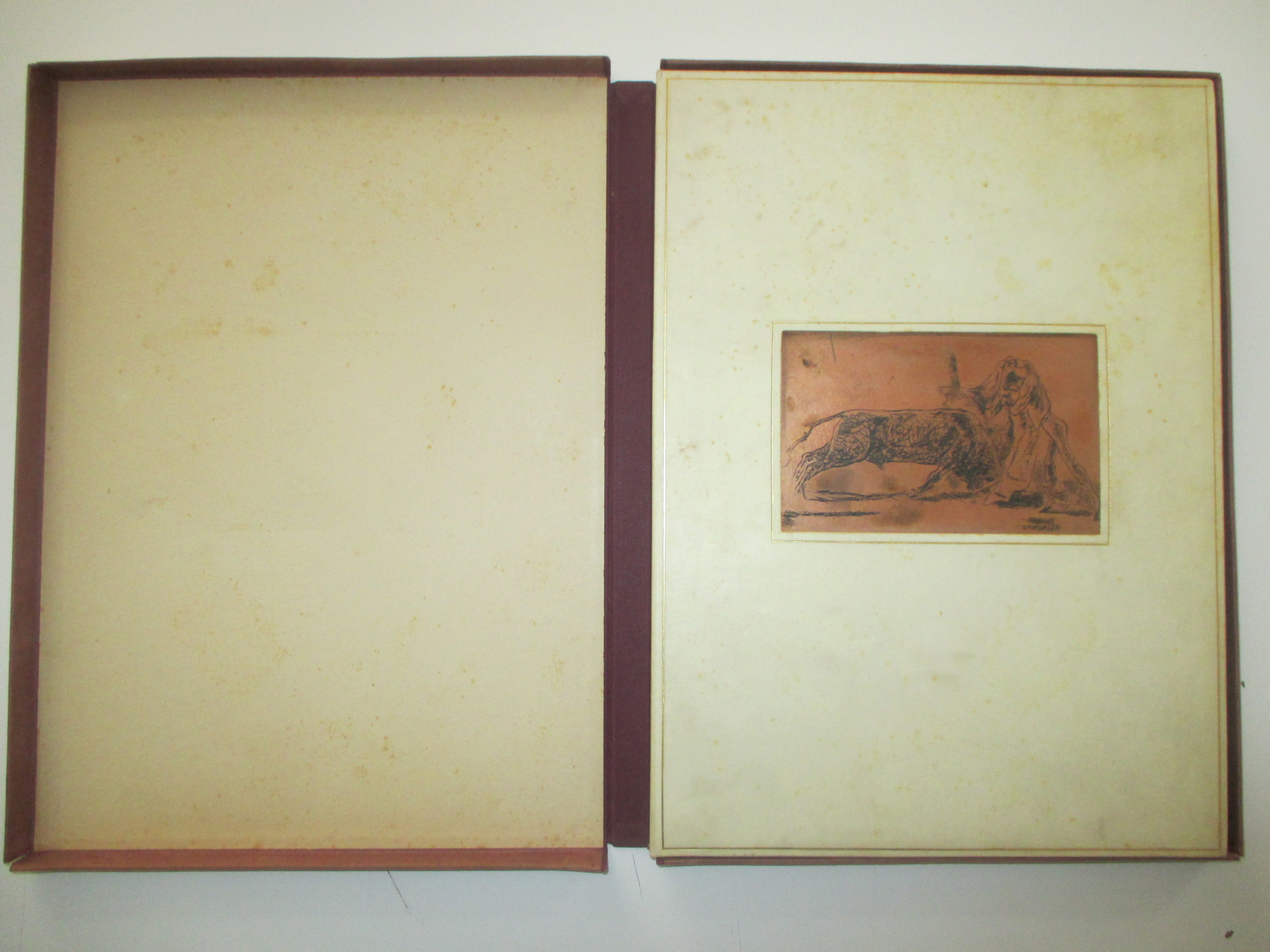 33,5 : 24,5 cm. 2 Blatt, 21 signierten Original-Radierungen von Willi Geiger. Original-Ganzpergament-Mappe mit in den Vorderdeckel eingelegter Original-Kupferplatte, Deckelfileten und Rückentitel in Gold, Kassette, sign. Enders.