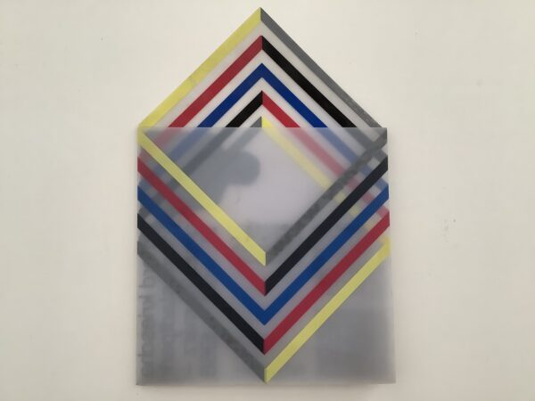 28 : 19 cm. 12 pages printed on white stock, with original translucent overlays printed in geometric bands of cyan, magenta, yellow and black Original stapled binding.