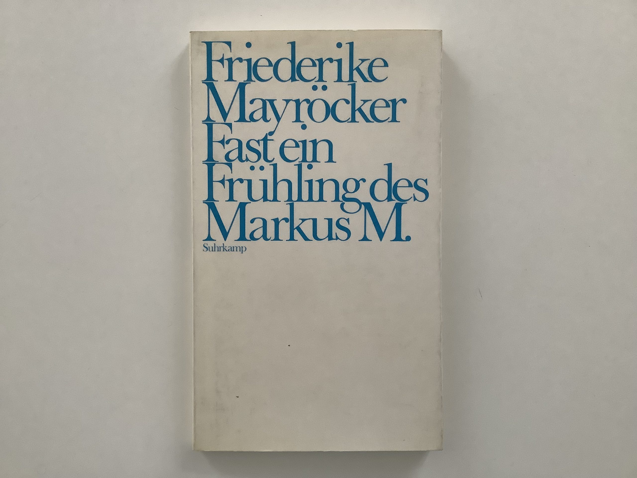 Mayröcker, Friederike. – Fast ein Frühling des Markus M.10,00 € Erste Ausgabe. 1 vorrätig - Mayröcker, Friederike. - Fast ein Frühling des Markus M. Menge + In den Warenkorb Artikelnummer: 18801AB Kategorien: 20.Jahrhundert, Austriaca, LITERATUR, ZVAB Beschreibung Beschreibung Frankfurt, Suhrkamp, 1976. 20 : 12 cm. 104 Seiten, 2 Blatt. Original Karton. 15,00 EUR Ähnliche Produkte Feind, Berthold. – Das verwirrte Uas Jacob, oder das Gesicht der bestrafften Rebellion. An Sticke. Schau-Spiel. Auf dem Naumburgischen Theatro in der Petri-Paul Messe 1708 abermahl aufgeführet. 15,00 € In den Warenkorb Arnold – Arnold, Karl. – Zeichnungen und Karikaturen. (1883-1953). 10,00 € In den Warenkorb Kräftner, Johann. – Bauen in Österreich, die Fortführung einer grossen Tradition – Building in Austria, carrying on a great tradition – L’Architecture en Autrioche, pour suite d’une grande tradition. 25,00 € In den Warenkorb Ziersch, Amelie. – Maler machen Bücher. Illustrierte Werke von Manet bis Picasso. 20,00 € In den Warenkorb