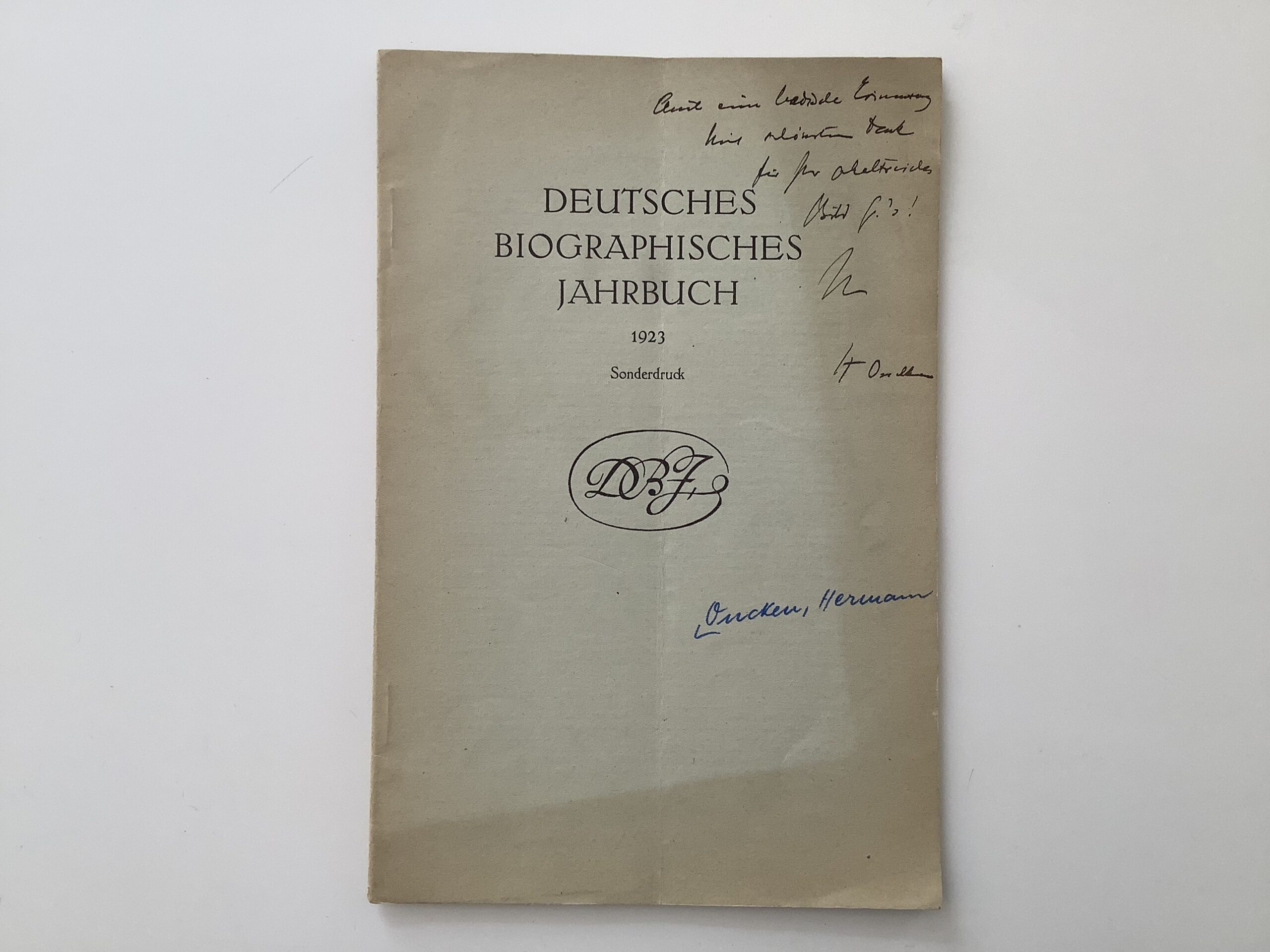 Mit eigenhändiger Widmung des Verfassers aus dem Vorderdeckel. – Deutsches Biograpisches Jahrbuch 1923. Sonderdruck.