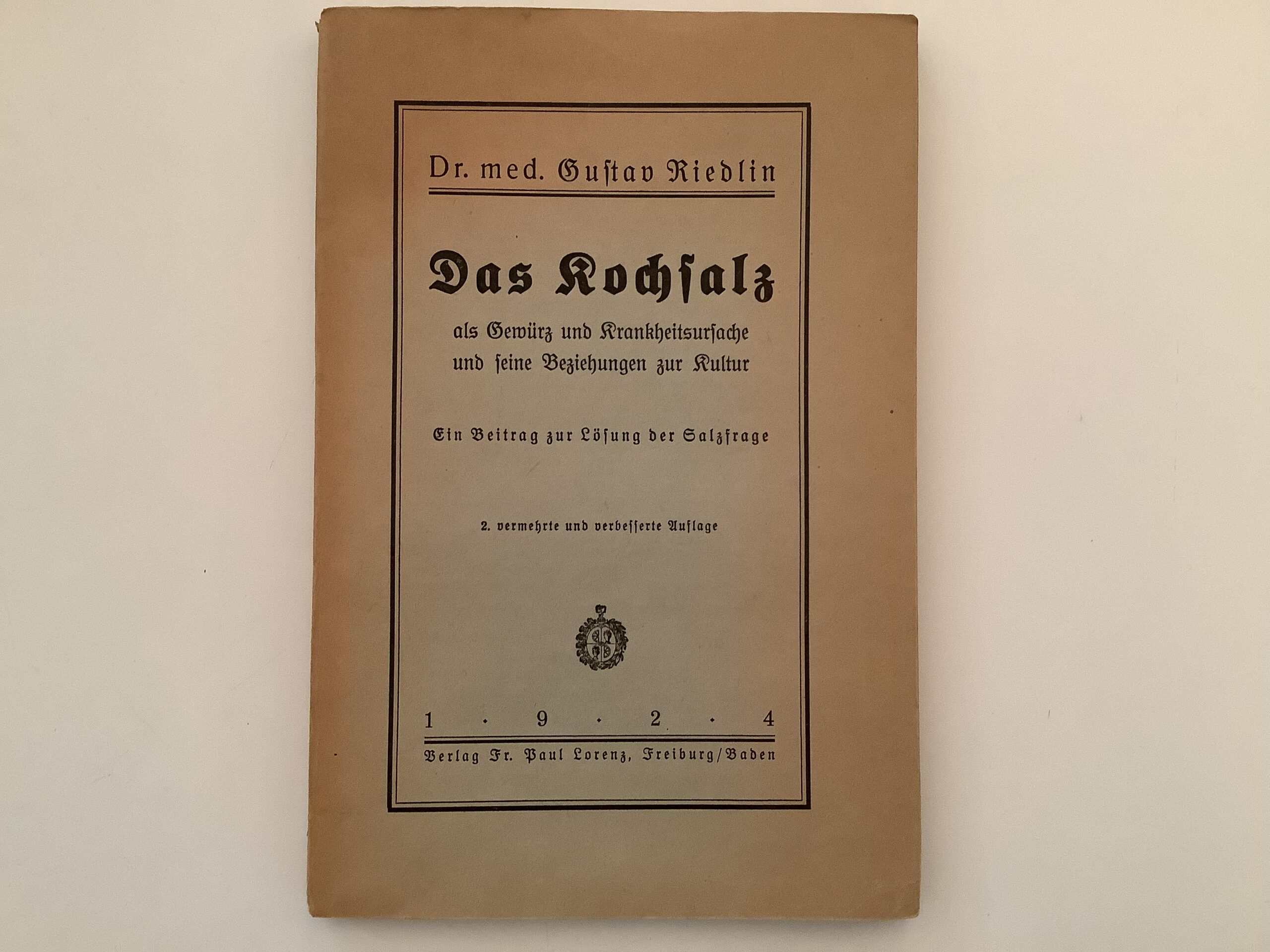Salz – Riedlin, Gustav. – Das Kochsalz als Gewürz und Krankheitsursache und seine Beziehung zur Kultur.